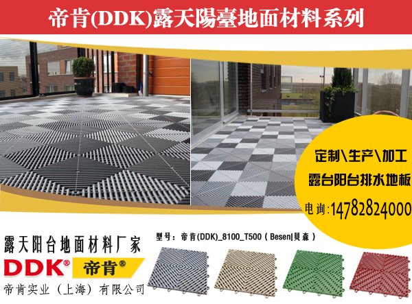 | 室外陽臺地面裝修地面材料——帝肯(DDK)_8100_T500樓頂露臺鋪地磚,15mm-18mm厚露天曬臺疏水磚可定制顏色。超疏水露臺地磚是一種在室外露臺裝修中使用的新型陽臺戶外地板,既創新又環保,樓頂露臺地面鋪什么地磚好?疏水露天陽臺地磚可以解決露臺積水以及地面色彩問題,廣泛應用在別墅陽臺裝修之中。 |