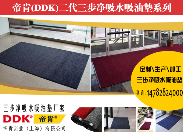 | 帝肯(DDK)二代神奇墊——三步凈地墊具有超細纖維紗線,8mm厚毯面吸水吸油性能佳,是雨季防滑吸濕墊利器!三步凈地墊規格: 1.2m*18m/卷 2m*18m/卷三步凈地墊顏色: 黑灰色 黑紅色帝肯(DDK)三步凈地墊的超強功能纖維在高效吸水吸油的同時超強絨毛回彈力有效地去除污垢和灰塵,具備較強的吸水地墊防滑功能。帝肯(DDK)三步凈地墊可按照客戶的要求進行隨意設計,吸 |