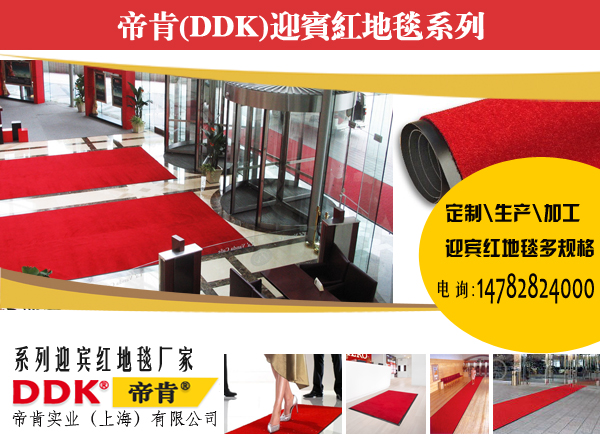 | 迎賓地毯一般為紅色。紅色地毯廠家帝肯提供多種寬幅及材質紅地毯迎賓地墊可定制生產。 |