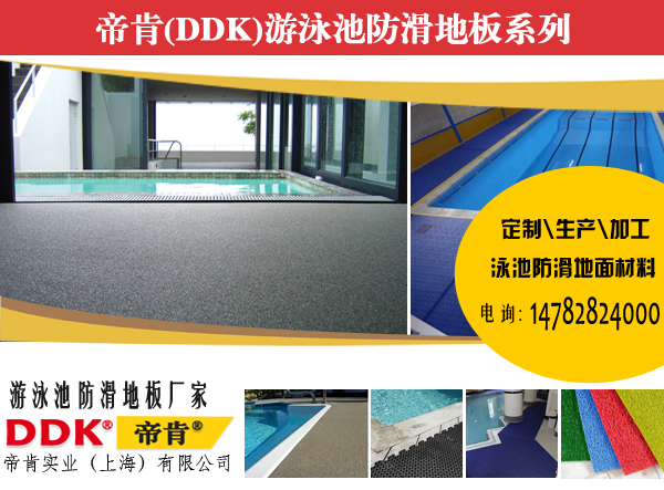 | 游泳池防滑墊很難清理?那就試試直接鋪設游泳池地面防滑材料——帝肯(DDK)系列泳池耐磨耐用型防滑防腐蝕地板。泳池地面鋪什么不容易臟?帝肯(DDK)游泳池防滑地板具有良好的穩定性、牢固性和耐磨度,耐酸堿腐蝕,耐紫外光,安裝方便,容易保養。耐腐蝕型泳池防滑地板的代表:帝肯(DDK)新型泳池防滑地板對化學藥品有很強的抵抗性,特別是氯水長時間浸泡后,不變形、不變色, |